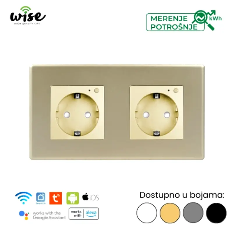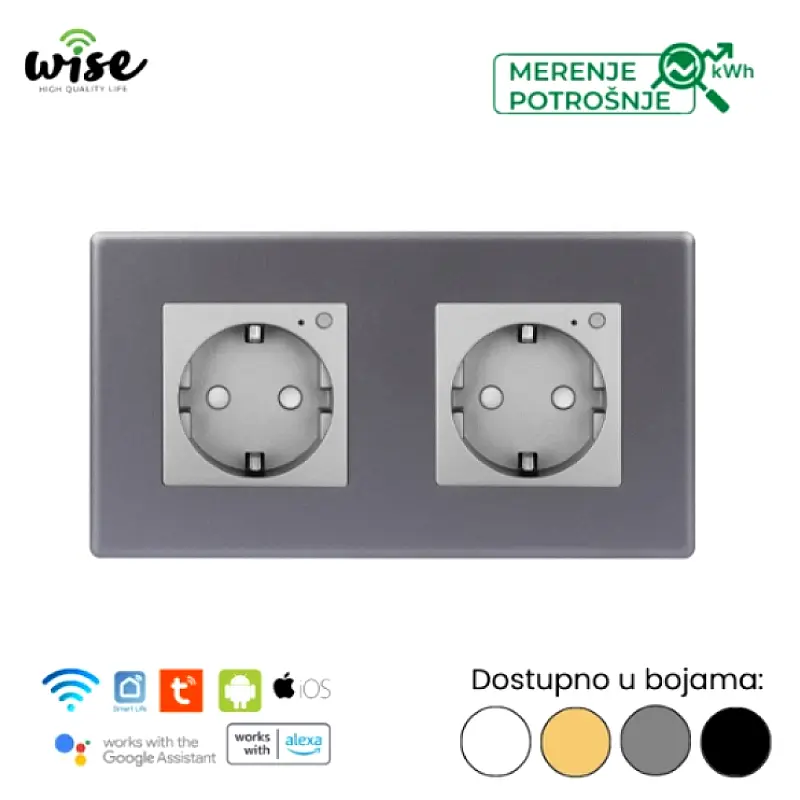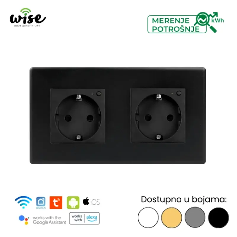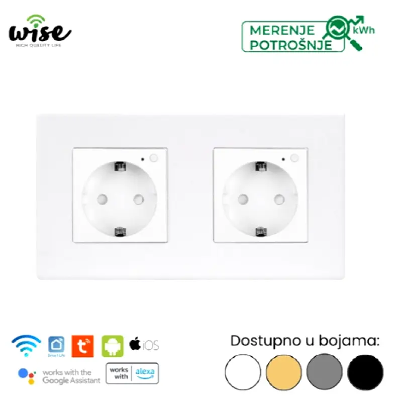 Wise pametna utičnica, modularna dupla 16A sa merenjem potrošnje – PVC panel